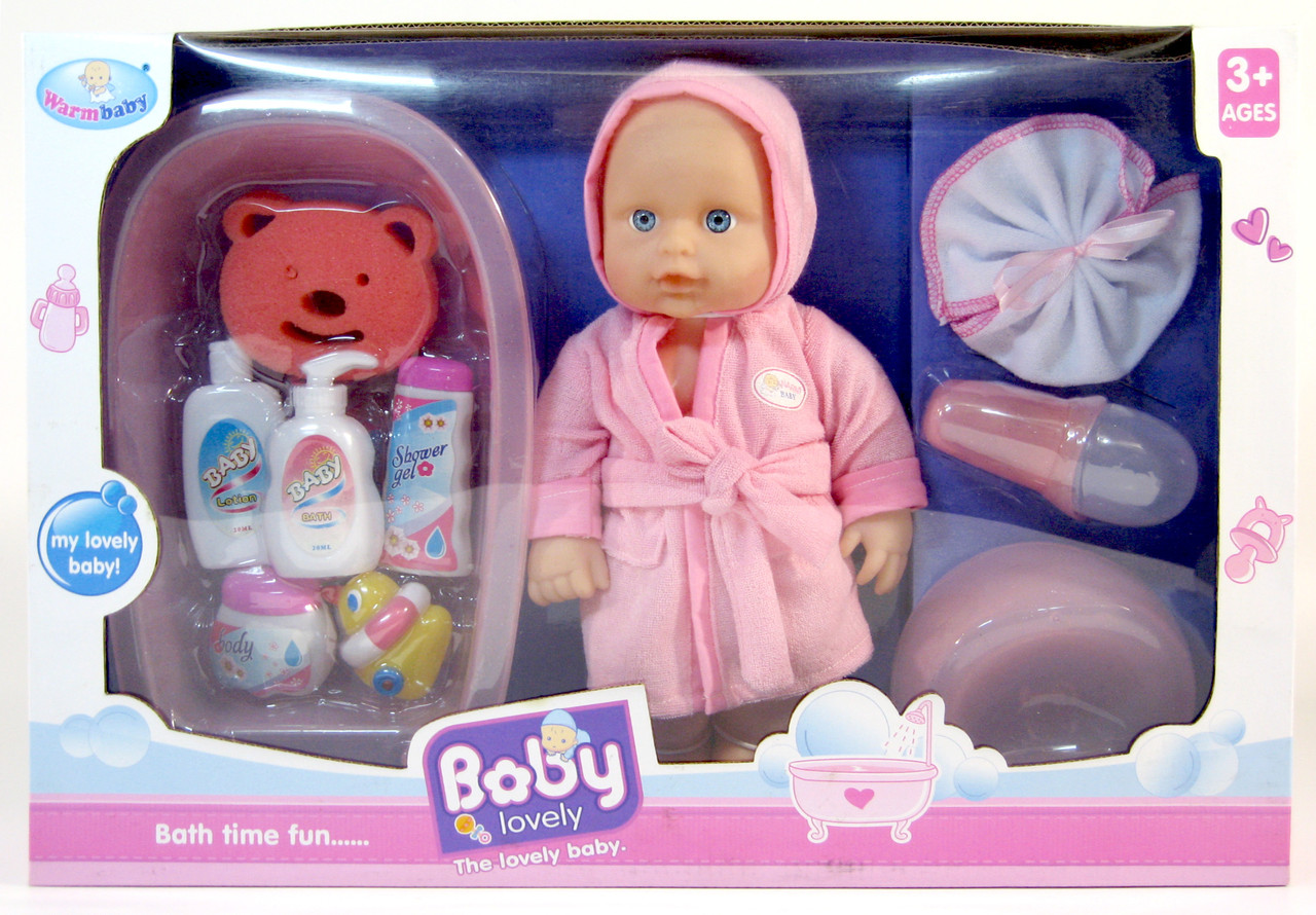 Для захоплюючої гри в комплекті з пупсом передбачені: пляшечка, соска, горщик, банний рушник, ванночка з аксесуарами.